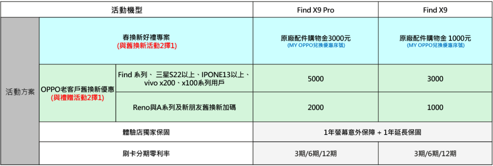 ▲OPPO Find X9 系列優惠內容。