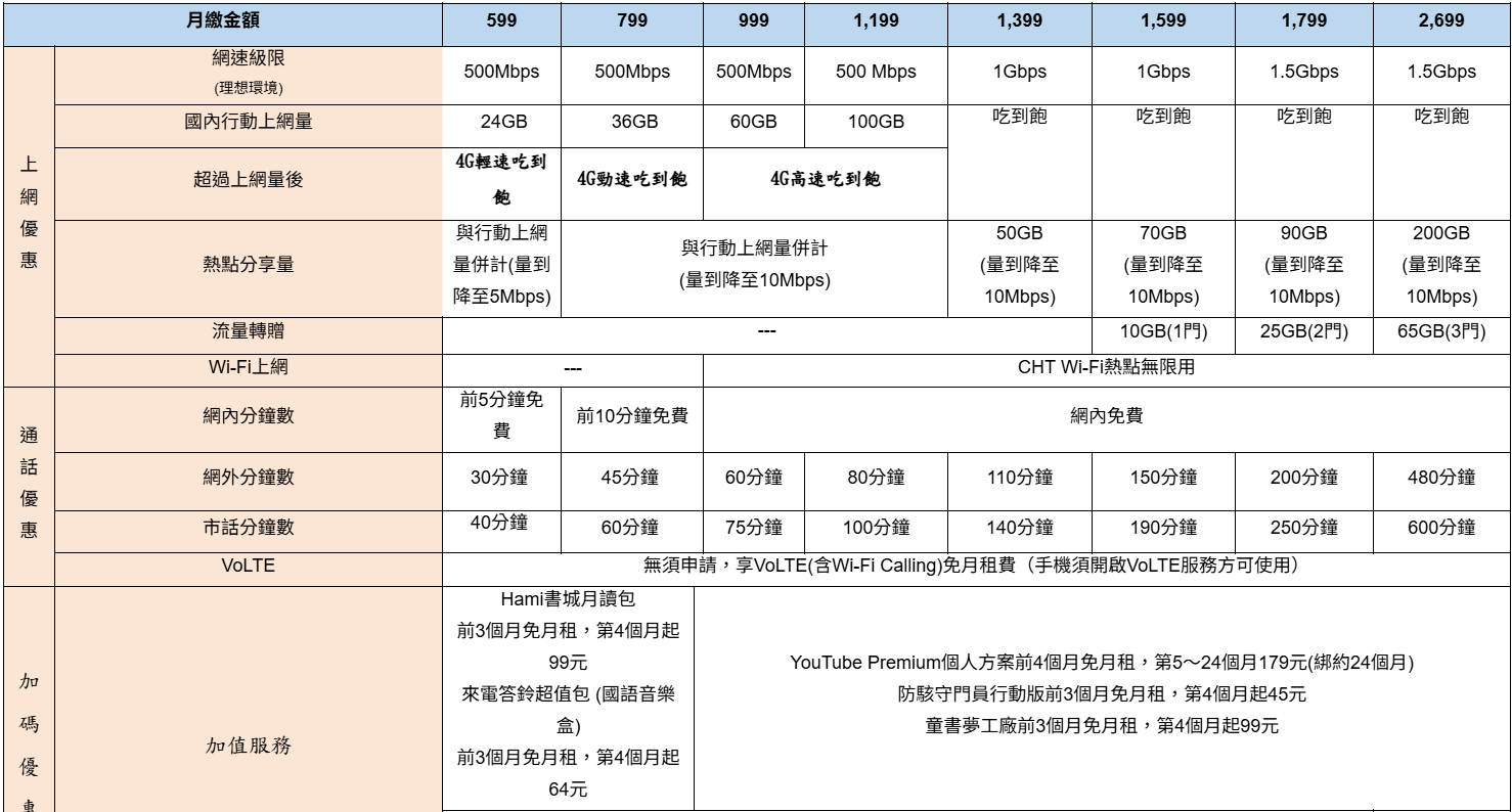 ▲中華電信精采 5G 方案內容。
