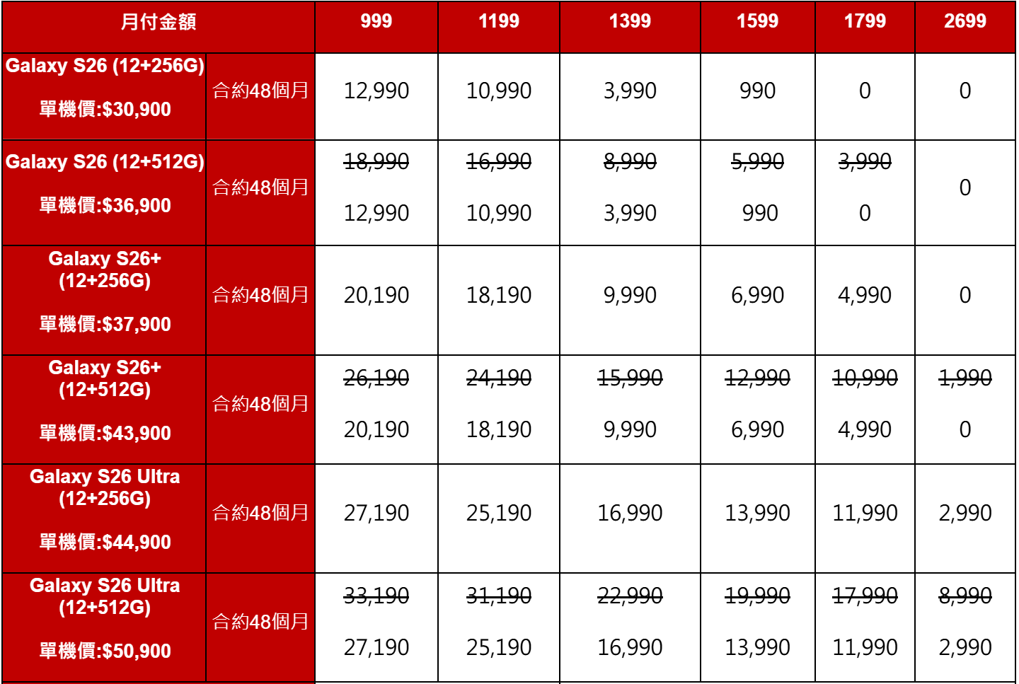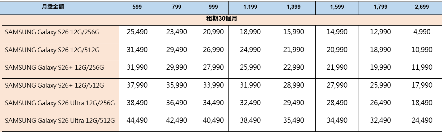 隨著三星正式展開 SAMSUNG Galaxy S26 系列在台灣的預購活動,中華電信、遠傳電信與台灣大哥大稍早也宣布 Galaxy S26 系列的購機資費優惠。搭配三大電信綁約購機,選擇中華電信、遠傳電信的 1,799 資費,綁約 48 個月,Galaxy S26 就可以免費 0 元帶回家;而台灣大哥大雖然同樣有提供 0 元購機的申辦優惠,但目前仍未公布具體的資費方案。
