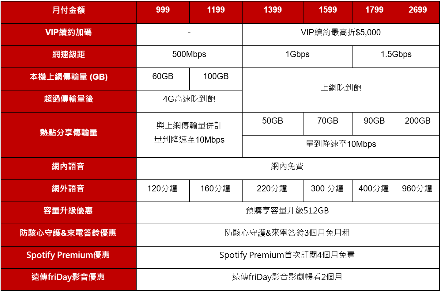 ▲遠傳電信 5G 方案(綁約 48 個月)。