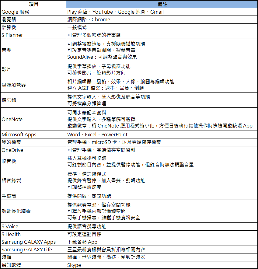 ▲SAMSUNG GALAXY A5 (2016) 內建 App 一覽。(點圖片可放大)