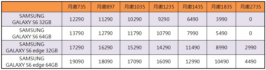 【中華電信 SAMSUNG GALAXY S6 / S6 edge 新資費】