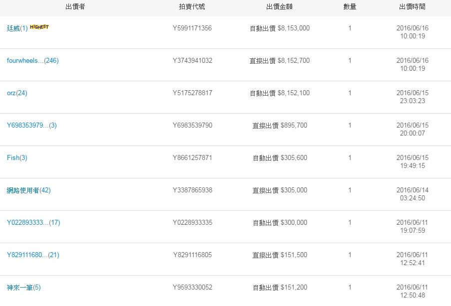 編號 TW001 的台灣第一號 SAMSUNG GALAXY S7 edge Injustice Edition 蝙蝠俠限量款公益拍賣稍早已經在 Yahoo 拍賣結標了,最終出價居然高達台幣 8,153,000 元!SAMSUNG GALAXY S7 edge Injustice Edition 蝙蝠俠限量款於 6/7 下午以 38,000 元開始競標後,24hr 內就就已經衝破 150,000 元,6/11 突破 300,000 元,之後一直到 6/15 價格都沒有大波動,但就在結標的前幾個小時,出價金額忽然從 305,600 元翻倍跳升到 895,700 元,隨後更是一舉拉到 8,152,100 元,翻了將近 10 倍,最終結標金額為 8,153,000 元,等於原價的 214 倍!而本次拍賣所得將全數捐贈給兒童福利聯盟文教基金會。