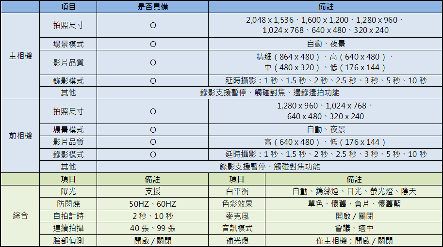 ◎ 130 萬畫素前鏡頭、F2.8 光圈