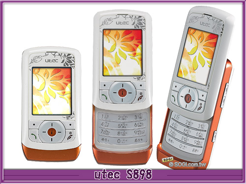 手機市場將再掀起迷你滑蓋美學新風潮!迷人時尚的雕花圖騰,襯著迷你纖細的曲線機身,在滑蓋的瞬間,品味質感立即乍現。utec S898,一個引人遐思的行動精品,用心詮釋了迷人、迷你的滑蓋概念美學,在動靜影像拍攝、來電影片、MP3、T-Flash 記憶卡等豐富內涵的詮釋之下,將以 4,990 元之新春震撼價,讓所有著重時尚、質感的品味族群,在農曆新年即將來臨之際,都能夠輕鬆換機、恣意妝點隨身行頭。