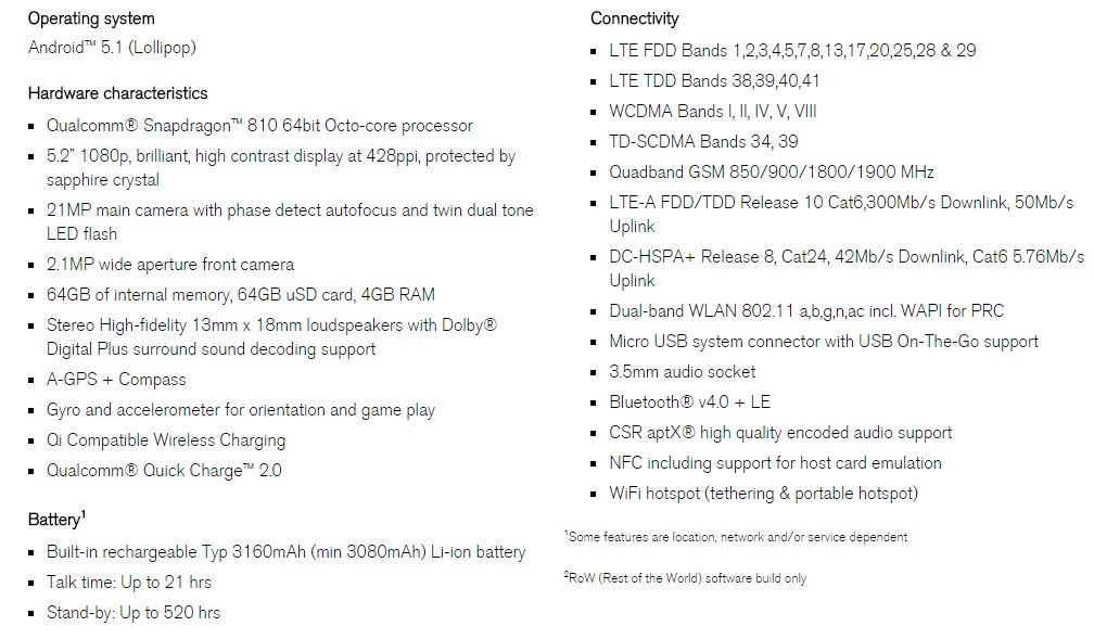 ▲Vertu New Signature Touch (2015) 規格一覽。