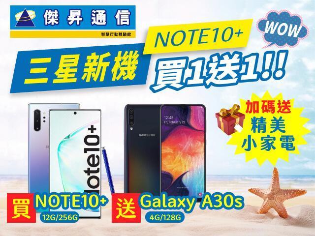 凡於即日起到12月底來全省任一傑昇通信門市,以原廠建議售價36900元買三星旗艦新機Galaxy Note 10+(限12G RAM/256G ROM版本)即贈送超強3鏡頭三星Galaxy A30s一台唷(價值$8990)~除此之外,加碼再送精美小家電一個,這麼超值的優惠,只在傑昇通信才有哦~