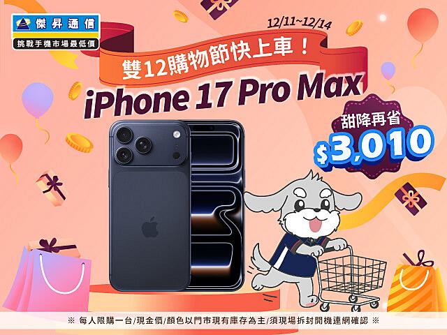 【快閃活動】雙12購物節快上車!iPhone 17 Pro Max 甜降再省 $3,010!
