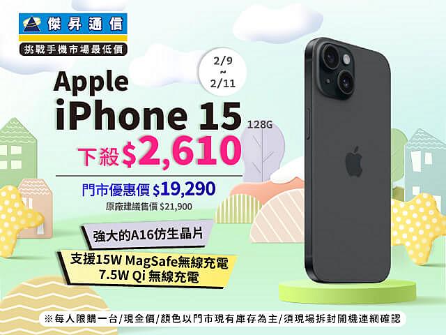【本週獨賣】A16 仿生晶片,流暢表現天天感受得到!iPhone 15 128G 現省 2610 元 ~