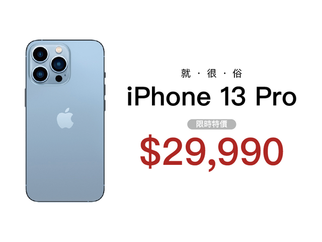 免麻煩了!挑戰全網最低價!Apple iPhone 13 Pro 128GB 限時優惠價只要 $29,990,買到現省 $2,910,期間限定數量有限!