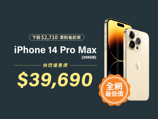 下殺 $2,710 iPhone 14 Pro Max 256GB 限時優惠 $39,690