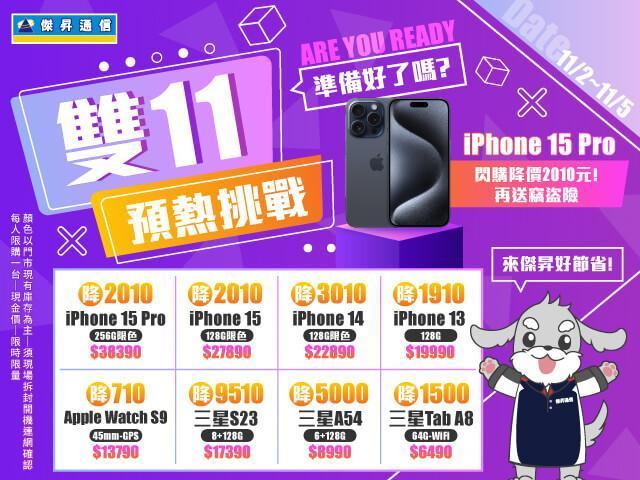 【快閃活動】雙11預熱挑戰!準備好了嗎?iPhone 15 Pro閃購降價2010元,再送竊盜險!