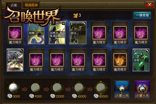再也不用煩惱技能卡牌難獲得了。玩家現在能夠通過新加入的“占星”系統,快速獲得技能卡牌。占星的同時收集掉落的魔法碎片,兌換心儀的高品質高能力的技能卡牌也是一個不錯的途徑。