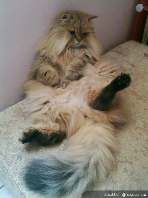 我強烈覺得槍伯跟貓好不搭喔....而且嚇人的是槍伯家裡有七隻小福阿...............恕刪
