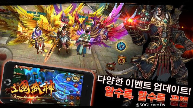 突破百萬下載,長期蟬聯韓國排行榜前三名的最強三國手遊《三國武神》,自從在台推出繁體中文版後,受到廣大玩家的喜愛,上線人數持續爆滿,伺服器週週緊急加開,為感謝玩家支持,官方也不斷推出回饋活動,讓玩家給可以盡情享受緊湊的變身連擊樂趣。