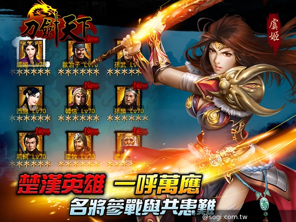 隨著歷史名劇「楚漢傳奇」劇情高漲,同樣以楚漢相爭時代為背景的《刀劍天下》,也同樣如實呈現當代名將和美人,玩家所被賦予的任務,便是因應任務需要,招募各式特色名將和名姬,隨同玩家作戰,當故事走向楚漢分道,玩家被迫選擇國家陣營時,先前所擁有的名將們便需要取捨並升級,以利為玩家爭奪最後天下。
