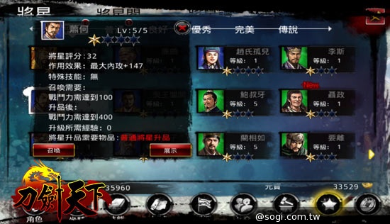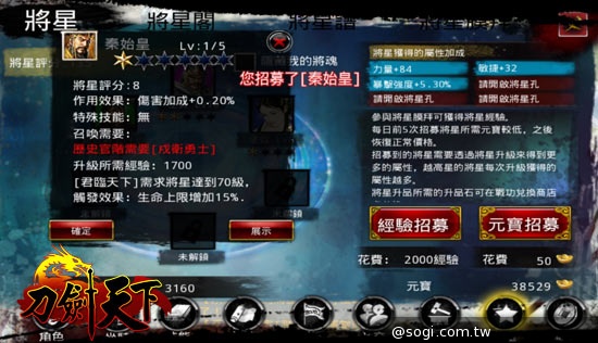 ▲將星系統開啟之後,玩家可透過將星招募來取得新的將星,就連秦始皇也能招募。