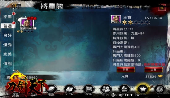 ▲當將星等級練滿後就可用升品石來提高星數及上限等級。