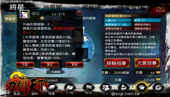 ▲將星可利用將星池裡的經驗值來增加等級,等級提升後帶來的作用效果也會提高。