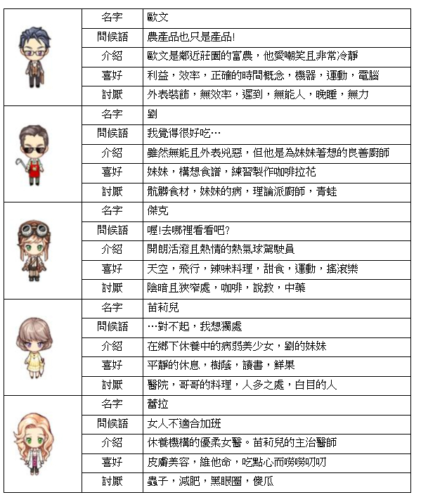 每一位 NPC 都有著全然不同的個性與專長,也都將為每一位玩家們帶來不同的任務內容,試著跟他們互動,爭取他們成為你得力的助手,一起成為莊園的一份子吧!