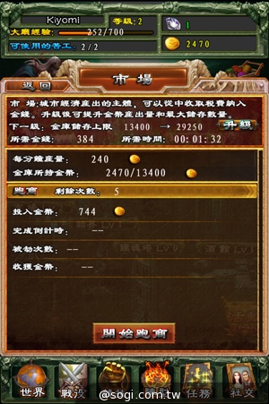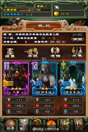 酒館的升級,可增加英雄存放的數量上限。市場升級可以提升金幣的產出量和最大儲存量,還可以進行跑商來收穫金幣。