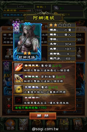 獵人(弓手) 血量一般般,物防、魔防都很弱,主要是以遠程物理攻擊為主,攻擊力是比較高的喔!! 也因為是以遠程物攻為主,所以對法師系物防較弱職業有剋制力,各項屬性太平均便成為獵人的弱點了!