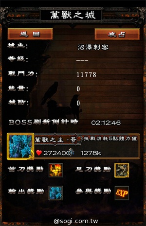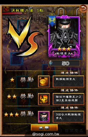 ▲攻打城池,依達成條件也有不同獎勵。