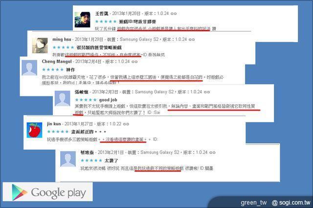 前三萬下載數中,高達千人五顆星評價的《赤壁三國》是首款由 Unity 引擎所打造的全 3D 策略手遊,畫面細緻,可 360 度自由旋轉與縮放,讓玩家以多種視角進行攻略,主打即時性的觸動戰鬥操控體驗,甫推出即驚艷玩家,於 Google Play 取得近滿分的評價,玩家們讚嘆操作流暢,畫面精緻「連正要砍柴的居民,動作都非常細膩」,觸控移動兵種的玩法有挑戰性,「無論內容、畫面和戰鬥風格都傲視他款同性質遊戲」、就連内嵌小遊戲都有出乎意料的玩法,整體耐玩度媲美 PC 版與網頁遊戲,開創手機遊戲新格局,玩家大讚「當我遇上赤壁三國後,就覺得之前都是白花的!」。