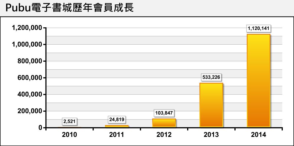 ▲Pubu 電子書城會員每年皆以驚人的幅度成長。