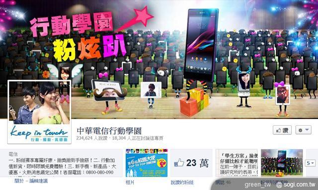 「中華電信行動學園」Facebook 粉絲團於 2010 年 11 月成立,至今已累積超過 23 萬名粉絲,由於能精準洞悉中華電信客戶族群特性與需求,故能以精緻圖文快速提供品牌行銷活動與優惠促銷方案,每日討論量平均已超過二萬人。