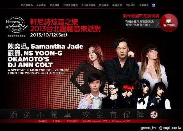 「軒尼詩炫音之樂 2013 台北壓軸音樂派對」YouTube 官方頻道: