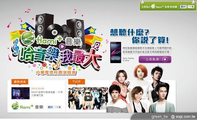 中華電信深耕校園多年,為了讓青年學子體驗全方位數位音樂生活魅力,今年已連續第四年舉辦校園演唱會。「中華電信 Hami+ 音樂」校園演唱會除了邀請多位當紅偶像熱烈演出外,更於活動官網舉辦「Hami+ 音樂全聽我 - 想聽什麼你說了算」網路活動,只要在 10/31 前選擇最喜歡的歌手及最想聽她 / 他唱哪首歌,即有機會抽中 Sony Xperia Z Ultra 及校園演唱會歌手獨家好禮。