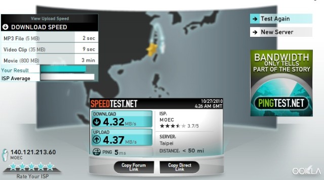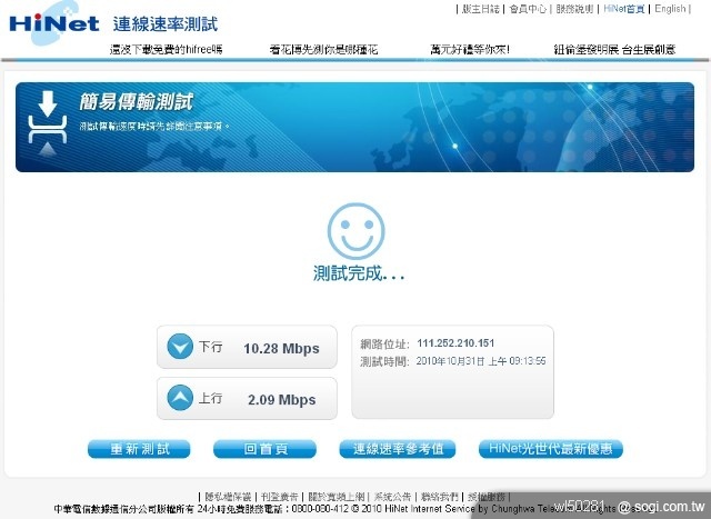 - 測試日期與時間:2010/10/31,上午 3 點 18 分左右