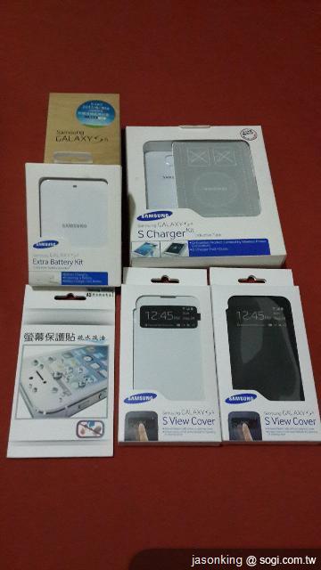 內含 全新S4原廠充電組(原廠電池*1+原廠座充*1) (市價2490)+ 全新S4原廠無線充電組(市價3390) +全新原廠S4智慧喚醒皮套 黑白各1 (市價1990)+ 全新三星原廠16G記憶卡(市價1290)+ 疏水疏油保護貼*1