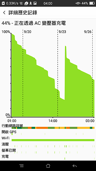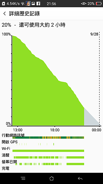 電量:出門到回家耗電100~47% , 使用內容:全程藍牙耳機播放音樂、拍照、攝影、遊戲、FB。