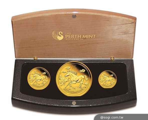 ▲三星慶馬年,馬年精鑄金幣(3枚套幣)。