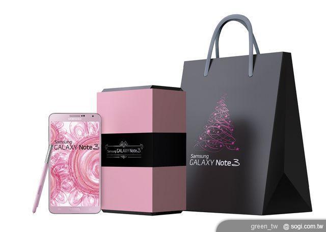 GALAXY Note 3 香頌粉「聖誕珠寶盒」典藏版於三星智慧館獨家販售,自 12 月 13 日正式溫暖開賣,限量 1200 套,此外,12 月 21 日、22 日至台北、台中、新竹指定門市參加聖誕特別活動的消費者,還有機會在現場競標代言人 Hebe 親筆簽名的特殊號碼典藏版,另更加送原廠藍牙耳機;現場參加活動者還有機會獲得精美贈品,提前度過溫暖耶誕(註三)!