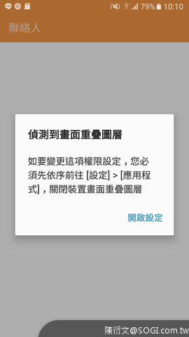 為什麼我要允許權限的時候系統就會跑出這個 然後也不知道該如何解決 所以有好幾個APP都無法使用 連要新增聯絡人也不行...求大大們幫幫忙 感謝!!!