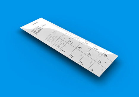 初看到這個玩意,還以為又是一個紙糊的傢伙來佔版面了。再細看一下,又覺得這好像是個路邊隨意拿到的贈品盒( 尤其上頭還有一個像是釘書針般的橫線 )。不過事實並不是這樣的,這個可是由 Roman Kriheli 所設計,貨真價實實際可用的行動電話。