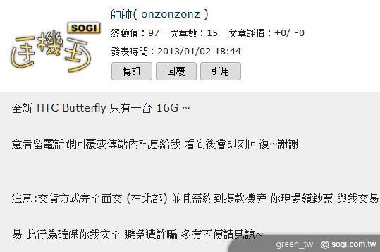 是否是手二買賣區中,主題:賣全新 HTC Butterfly這篇?