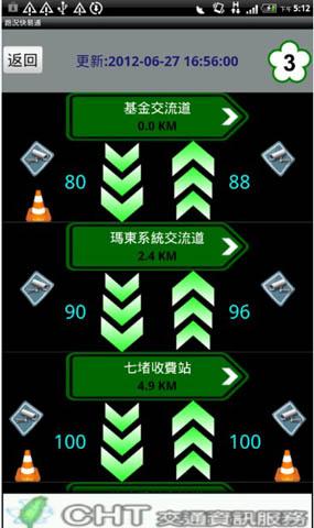 上班日尖峰時間,國道總是車多壅塞,連續假期的大量返鄉和出遊人潮更是嚴重塞爆國道,「路況快易通」手機 App 軟體服務提供10條國道及12條快速道路交通資訊查詢,讓開車民眾隨時了解最新路況,除了可觀看車流狀況與道路即時車速外,同時還提供國道路況電子看板同步資訊;若是預計行駛的道路車潮較多,可立時選擇替代道路前往目的地,避免塞在路途中,節省等待塞車的時間。