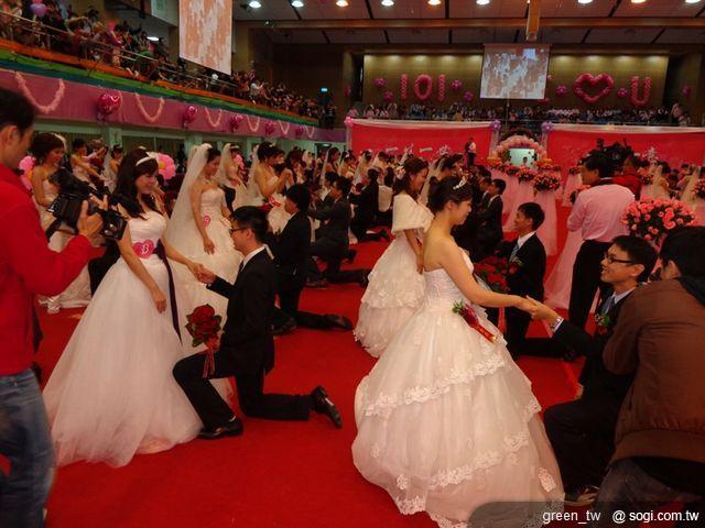 婚禮會場設於中華電信仁愛路綜合活動中心,亮麗耀眼的新娘、帥氣雄揚的新郎,伴隨著悅耳溫馨的音樂,緩緩走入會場,場面盛大莊重。新郎單腳跪在新娘身旁,深情款款對新娘許下終身承諾的求婚儀式,新人們互換戒指「愛是相互扶持、百般恩愛、永結同心、百般疼惜、永浴愛河,愛是永不止息」。現場熱鬧滾滾,喜氣洋洋,新人眷屬們,紛紛手持相機和攝影機擷取最佳畫面,逾千位在場的親友共同見證這幸福的一刻。