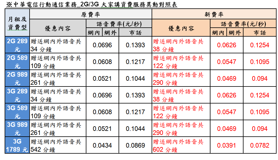 全費率級距同步調降 10% 每分鐘通話最低 2.4 元起 最高贈送 602 分鐘免費通話