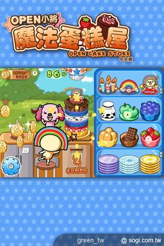 - 還記得曾創下超高人氣,由OPEN小將經營的便利商店嗎?這次 OPEN 小將要跨足蛋糕界,和你一起經營魔法蛋糕屋囉!超 Q 的製作方式,只要用手指依序由下 往上點擊蛋糕材料,就可以用魔法蛋糕機製作出五花八門的美味蛋糕!除了有草莓、鮮奶、巧克力等十多種材料,還有 OPEN 小將專屬的頭冠蛋糕裝飾,只有在魔法蛋糕屋才買得到喔!