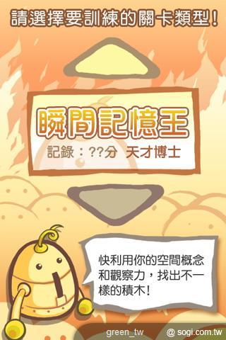 - 包含三種遊戲模式、八大主題關卡,融合實用與可愛的益智遊戲,不管是吃飯逛街或是考試念書,隨時隨地都可以測驗一下喔!想知道你的大腦活躍指數多少嗎?趕快一起來開發你的右腦吧!