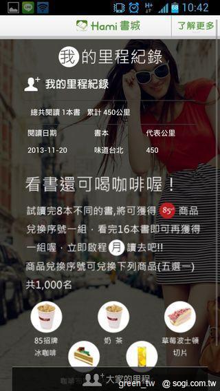 且於「月讀 Hami 樂遊萬哩」網路活動登入 FB 帳號後,還可寫下心得即時分享動人金句,即有機會得到 85 度 C 商品兌換券,憑簡訊序號可免費兌換 12oz 招牌咖啡、招牌水果茶、鮮奶茶、草莓波士頓、咖啡布蕾五選一,於活動期間下載 App 即送大師輕鬆讀「辦公室野蠻遊戲」電子書,讓您工作生活都順利。