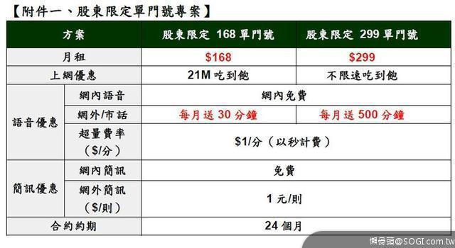 尊榮回饋一:股東限定 單門號168上網吃到飽,小資族趕快來