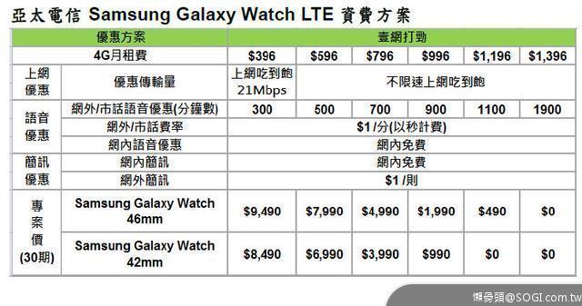 Samsung Galaxy Watch LTE 0元+GtTV組合包+一卡出國暢玩