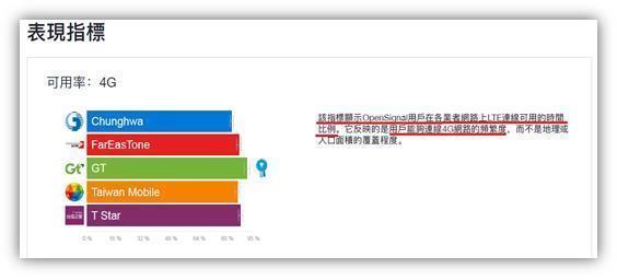 2. 「4G可用率」定義:「該指標顯示OpenSignal用戶在各業者網路上LTE連線可用的時間比例。它反映的是用戶能夠連線4G網路的頻繁度,…」