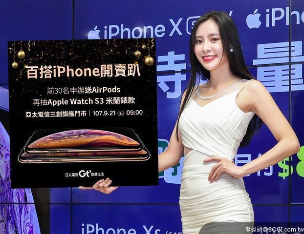 亞太電信宣布將於9/21(五)上午9時於Gt智慧生活三創旗艦門市,針對iPhone Xs、iPhone Xs Max開賣,舉辦「百搭iPhone開賣趴」,現場規畫數百項好禮,包括價值24,900元 的Apple Watch 3米蘭式錶環 1只 (42公釐)、上百個百元現金獎、咖啡兌換券及多樣精美禮品,歡迎民眾現場同慶。